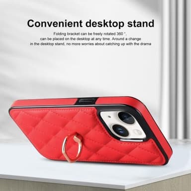 iPhone 14 -puhelinkotelolle PU-nahka+TPU-painettu rombikuvioinen takakansi rengastustalla - punainen Valmistettu TPU-materiaalista, päällystetty PU-nahalla, naarmuuntumaton ja sormenjälkiä estävä rombikuvio, herkkä ja tyylikäs Kameran ja näytön korotTutustu ominaisuuksiin