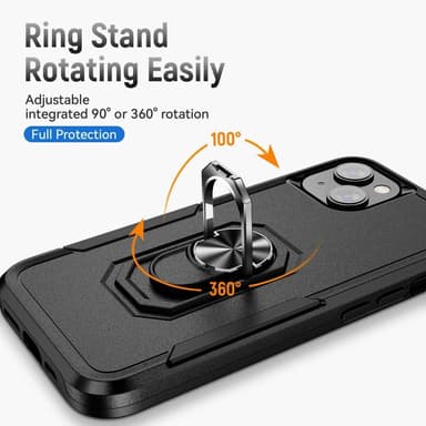 iPhone 14 Plus iskunkestävä TPU+PC Kickstand Puhelinkotelo Autoon kiinnitettävä metallilevy - musta