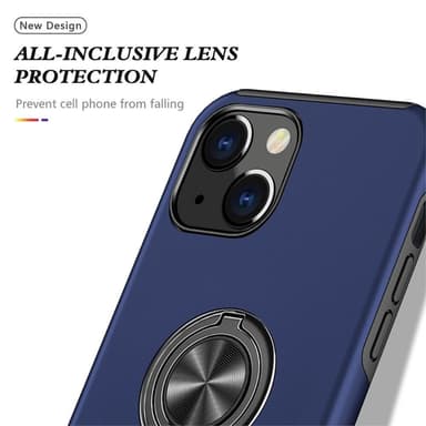 Täysi suojaava hybridipuhelimen suojakotelo rengasmuotoinen Kickstand Design iPhone 14: lle - Sininen Integroitu rengaspidike mahdollistaa helpon käytön yhdellä kädellä, voi toimia myös 360 asteen pyörivänä jalustana Sisäänrakennettu CD-suonet metallTutustu ominaisuuksiin