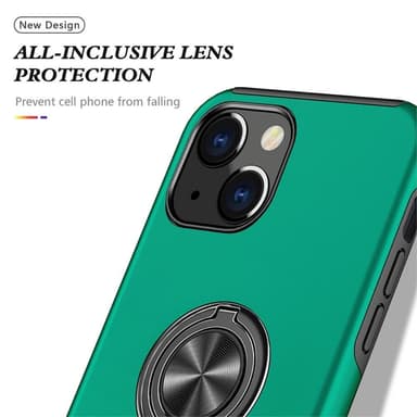 Täysi suojaava hybridipuhelimen suojakotelo Rengasmuotoinen Kickstand Design iPhone 14: lle - Integroitu rengaspidike mahdollistaa helpon käytön yhdellä kädellä, voi toimia myös 360 asteen pyörivänä jalustana Sisäänrakennettu CD-suonet metallilevyTutustu ominaisuuksiin
