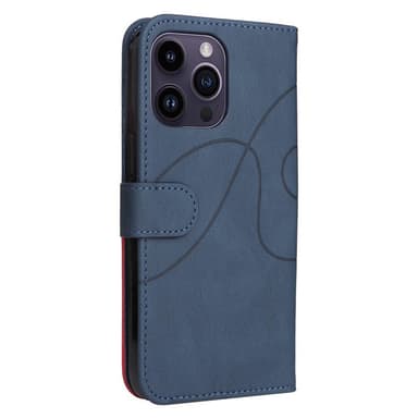 iPhone 15 Pro Max KT Series-1 Kak sivärinen liitoskotelo PU-nahkainen käsilaukkuteline lompakko Iskunkestävä kääntökansi hihnalla - sininen Valmistettu PU-nahasta ja TPU-materiaalista, kaksikerroksinen suojaus Muodikas kaksivärinen liitosmalli, jossaTutustu ominaisuuksiin