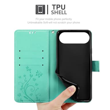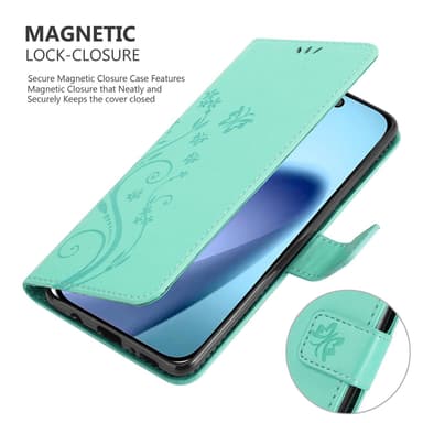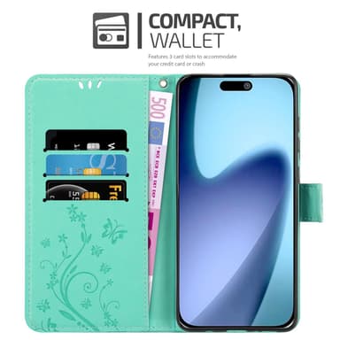 iPhone 17 AIR Suojakuori Lompakkokotelo Kukka Turkoosi