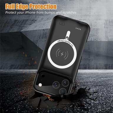 A29S iPhone 17 Pro -puhelimen laturikotelo, pehmeäreunainen 6000mAh varavirtalähde, yhteensopiva MagSafen kanssa【Tehokas akun kapasiteetti】6000mAh:n todellinen kapasiteetti pidentää merkittävästi puhelimesi akunkestoa ja pitää puhelimesi ladattuna koTutustu ominaisuuksiin