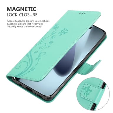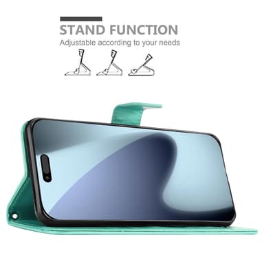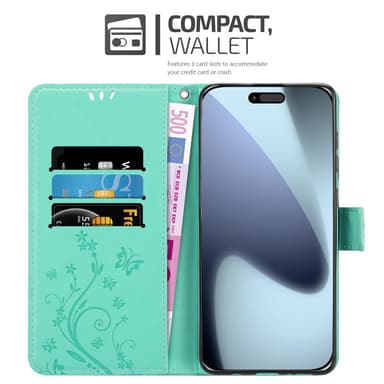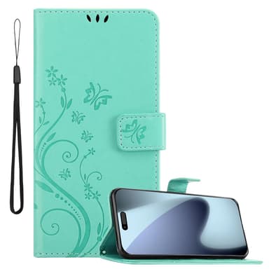 iPhone 17 PRO Suojakuori Lompakkokotelo Kukka Turkoosi