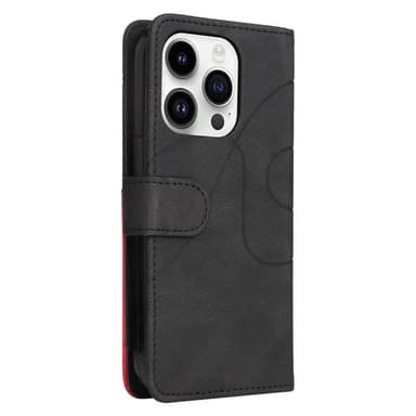 iPhone 15 Pro KT Series-1 Kak sivärinen liitoskotelo PU-nahkainen käsilaukkuteline lompakko Iskunkestävä kääntökansi hihnalla - musta Valmistettu PU-nahasta ja TPU-materiaalista, kaksikerroksinen suojaus Muodikas kaksivärinen liitosmalli, jossa paineTutustu ominaisuuksiin