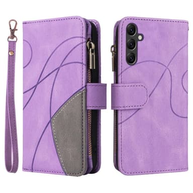 KT-monitoimisarja-5 Samsung Galaxy A14 5G monikorttipaikoille Pudotuskestävä PU-nahkainen puhelinkotelo Kaksivärinen liitosvetoketjutasku matkapuhelimen kansi.Tutustu ominaisuuksiin