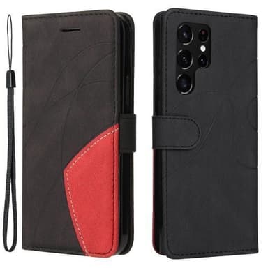 Matkapuhelinkansi Samsung Galaxy S23 Ultra KT -nahkasarjalle Kaksivärinen liitoskirjatyylinen PU-nahkainen puhelinkotelo hihnalla Valmistettu PU-nahasta ja TPU-materiaalista, kaksikerroksinen suojaus Muo dikas kaksivärinen liitosmuotoilu, jossa on paTutustu ominaisuuksiin