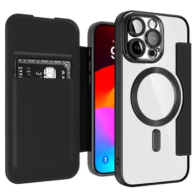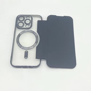 Langaton magneettinen matkapuhelimen nahkakotelo. Musta iPhone 15 Pro Max