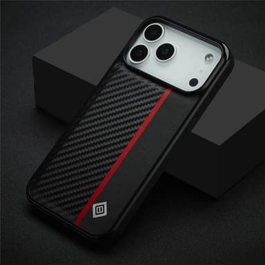 TPU + EVA 2-in-1 hybridi pohjakotelo, kestävä ja naarmuuntumaton. Hiilikuituteksturoitu pinta ja PU-nahkapäällyste, jossa punainen pystysuora raita, tyylikäs ulkonäkö.Tutustu ominaisuuksiin