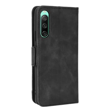 Lompakkoteline Käännettävä suojakotelo Sony Xperia 10 V - puhelimelle - musta lompakkopaikka korttien ja käteisen säilytykseen Taitettava teline kätevää katselua varten Tarjoaa koko vartalon suojan naarmuilta Varattu vastaanottimen reikä puhumiseen kTutustu ominaisuuksiin