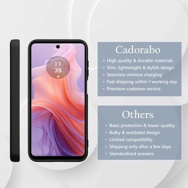 [Täydellinen istuvuus] Erityisesti Motorola Moto E14iä varten kehitetty Cadorabo-kotelo sopii täydellisesti sen ääriviivoihin. Se ympäröi tarkasti äänenvoimakkuuspainikkeet, valmiustilapainikkeen ja laitteen kaaret.