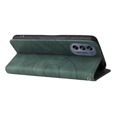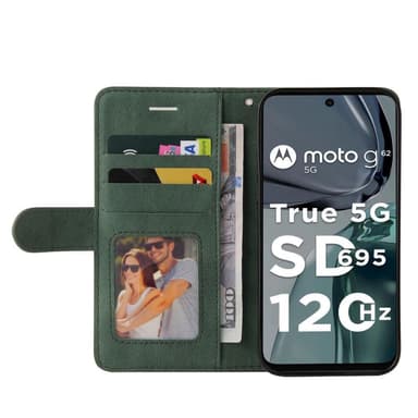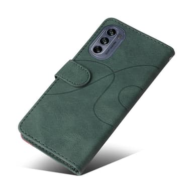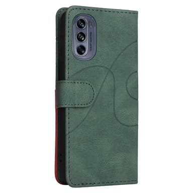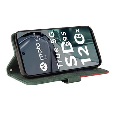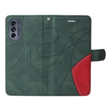 Motorola Moto G62 KT -sarjalle Kaksivärinen liitoskotel o PU-nahkainen käsilaukkuteline lompakko Iskunkestävä kääntökansi hihnalla - Greem Valmistettu PU-nahasta ja TPU-materiaalista, kaksikerroksinen suojaus Muodikas kaksivärinen liitosmalli, jossaTutustu ominaisuuksiin