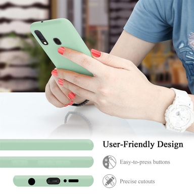 [Nestemäinen silikoni] Tämä Samsung Galaxy A10e / A20ein kotelo on valmistettu korkealaatuisesta nestemäisestä silikonista, ja se tarjoaa pitkäkestoista kestävyyttä ja miellyttävän käden tuntuman kaksikerroksisen rakenteensa ansiosta. Sisempi mikrokuitupehmuste suojaa lisäksi kulmia kulumiselta.