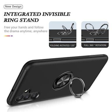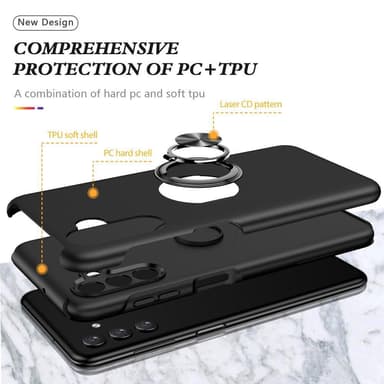 Metallirengaskotel o Samsung Galaxy A13 5G/A04s 4G TPU-suojukselle [sisäänrakennettu magneettiarkki] - musta Integroitu rengaspidike mahdollistaa helpon käytön yhdellä kädellä Voi toimia myös 360 asteen pyörivänä jalustana Sisään rakennettu CD-suonetTutustu ominaisuuksiin
