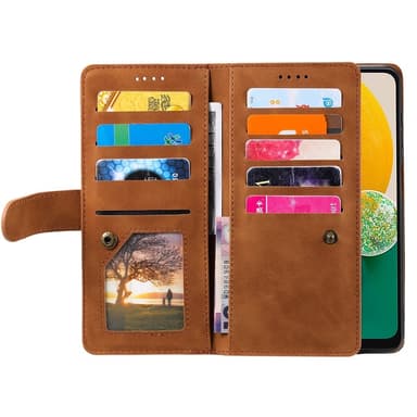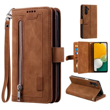 Samsung Galaxy A17 5G Kuori Vetoketjutaskulla ja 9 Korttipaikalla PU-nahastaLaadukas Materiaali: Valmistettu ensiluokkaisesta PU-nahasta ja TPU-sisuksesta, mukava tuntuma käsissäLompakkotoiminto: Varustettu korttipaikoilla, setelitaskulla ja vetoketjTutustu ominaisuuksiin