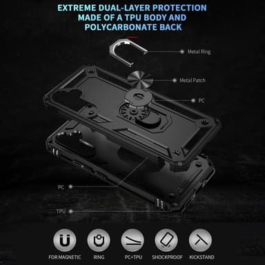 Samsung Galaxy A54 5G putoamista estävä puhelinkotelo Ring Kickstand PC + TPU-älypuhelimen kansi liukukamerasuojalla - musta Valmistettu TPU: sta ja muovimateriaalista, sormenjälkiä estävä ja herkkä kosketukseen Sisään rakennettu pyörivä jalustuki maTutustu ominaisuuksiin