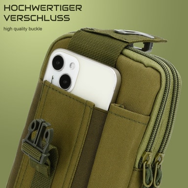 Molle-hihna selässä tarjoaa joustavat kiinnitysmahdollisuudet vyöhön, reppuun tai liiviin. Mukana toimitettu olkahihna tarjoaa lisäkantovaihtoehdon. Tämä monipuolisuus tekee laukusta korvaamattoman kumppanin.