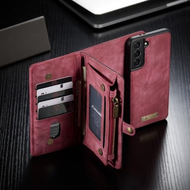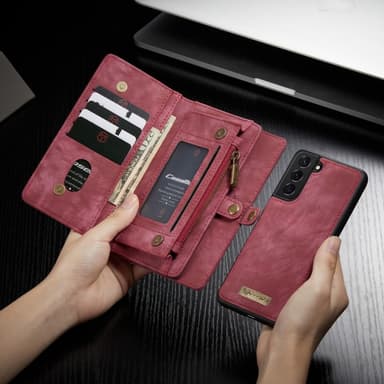 Valmistettu retrotyylisestä aidosta halkaistusta nahasta + TPU + muovimateriaaleista, lompakokotelo on korkealaatuinen ja kestävä. Irrotettava 2-in-1-muotoilu, nahkakansi ja nahkapäällysteinen PC TPU hybridikotelo absorboivat toisiaan vahvalla magnetismilla. Useita korttipaikkoja on suunniteltu tuomaan luotto- ja bussikorttisi kätevästi. Vetoketjulla suljettavalla käteislokerolla voit kuljettaa rahaa tai kuulokkeita puhelimellasi turvallisesti. Magneettinen suljin ja napsautuskiinnike lisäävät turvallisuutta. Suojaa puhelinta päivittäisiltä vaurioilta ja kuljeta tavaroitasi tyylikkäästi.