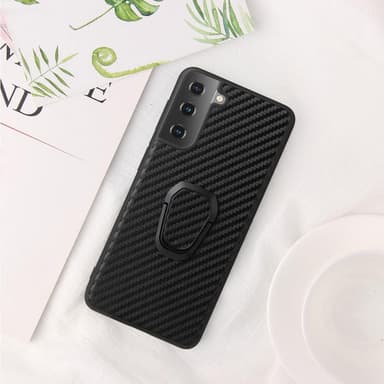 Puhelimen suojakuori päällystetty PU-nah alla + rengasmuotoinen jalustuki Samsung Galaxy S21 Plus 5G:lle - Hiilikuiturakenne Valmistettu PU-nahasta ja TPU-materiaalista Rengaspidike vaakasuuntaiseen näyttöön ja yhdellä kädellä Ultrafibrillaarinen vuoTutustu ominaisuuksiin