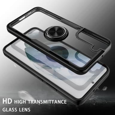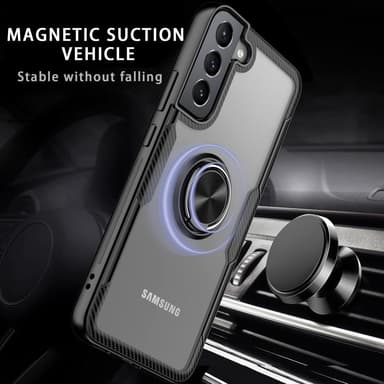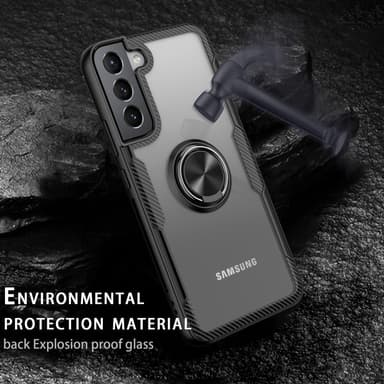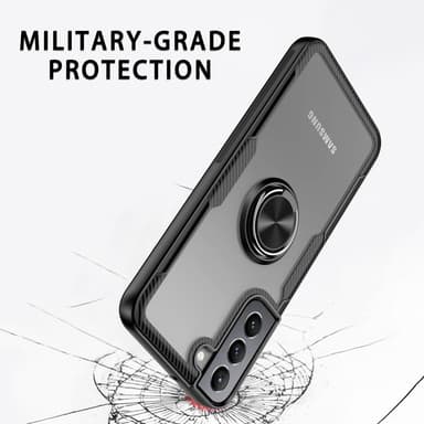 Pyörivä rengastuki Pudotuskestävä iskunkestävä TPU+PC + metallihybri dipuhelinkotelo Samsung Galaxy S22 5G:lle - musta Läpinäkyvä PC-takapaneeli näyttää puhelimesi alkuperäisen eleganssin TPU-reunoilla ilmatyydytetyillä kulmilla, iskunkestävä ja iskuTutustu ominaisuuksiin