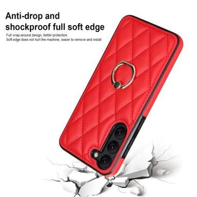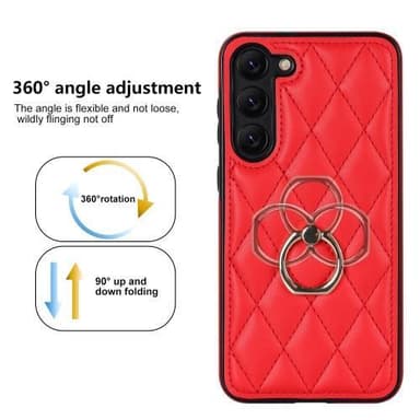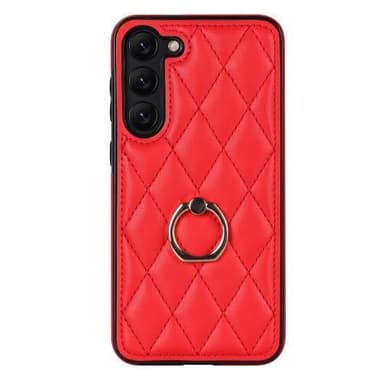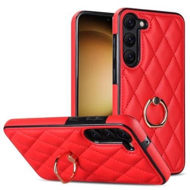 Samsung Galaxy S23 -puhelinkotelolle PU-nahka+TPU-painettu rombikuvioinen takakansi rengastustalla - punainen Valmistettu TPU-materiaalilla päällyst etystä PU-materiaalista, naarmuuntumaton ja sormenjälkiä estävä rombikuvio, herkkä ja tyylikäs KameraTutustu ominaisuuksiin