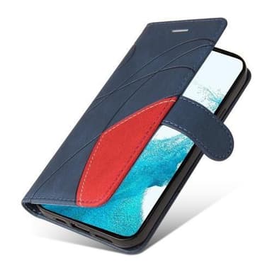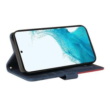 Samsung Galaxy S23 KT -sarjalle Kaksivärinen liitoskotel o PU-nahkainen käsilaukkuteline lompakko Iskunkestävä kääntökansi hihnalla - sininen/punainen Valmistettu PU-nahasta ja TPU-materiaalista, kaksikerroksinen suojaus Muodikas kaksivärinen liitosmTutustu ominaisuuksiin