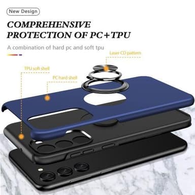 Täysi suojaava hybridipuhelimen suojakotelo Rengasmuotoinen sivutuki Samsung Galaxy S23+ -mallille Integroitu rengaspidike mahdollistaa helpon käytön yhdellä kädellä, voi toimia myös 360 asteen pyörivänä jalustana Sisäänrakennettu CD-suonet metallileTutustu ominaisuuksiin