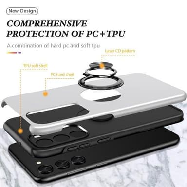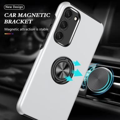 Täysi suojaava hybridipuhelimen suojakotelo Rengasmuotoinen sivutuki Samsung Galaxy S23+ -mallille Integroitu rengaspidike mahdollistaa helpon käytön yhdellä kädellä, voi toimia myös 360 asteen pyörivänä jalustana Sisäänrakennettu CD-suonet metallileTutustu ominaisuuksiin