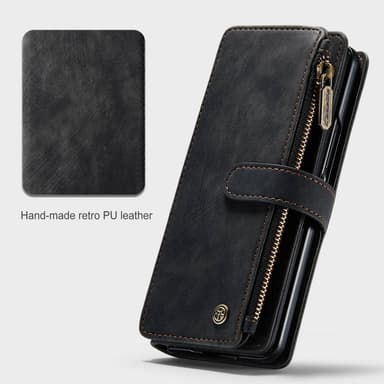CASEME C30 -sarja Samsung Galaxy Z Fold3 5G-vetoketjullinen lompakko Kohoutumaton PU-nahkainen usean korttipaikan puhelinkotelo - musta premium-PU-nahkakuori joustavalla TPU-sisäkotelolla, kestävä pitkäaikaiseen käyttöön Suunnit eltu useilla korttipaTutustu ominaisuuksiin