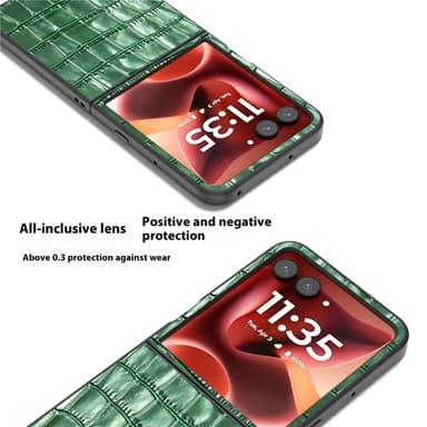 Tämä tyylikäs puhelinkotelo on valmistettu aidosta lehmännahasta ja PC-materiaalista, tarjoten ylellisen tuntuman ja suojan päivittäistä kulutusta vastaan.Tutustu ominaisuuksiin