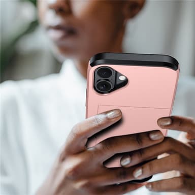 Koe optimaalinen mukavuus ja suojaus Armor-korttikotelolla. Valmistettu korkealaatuisesta TPU+PC-materiaalista, joka tuntuu miellyttävältä ja on sormenjälkienkestävä. Älykkääseen korttikoteloon takana mahtuu jopa kaksi korttia, aina käden ulottuvilla. Koholla olevat reunat suojaavat näyttöä ja kameraa naarmuilta ja kolhuilta.