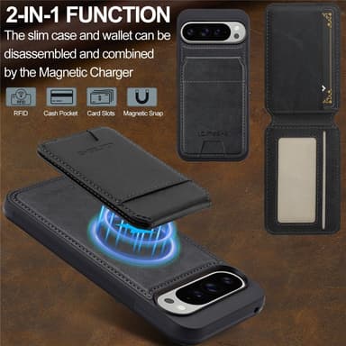 LC.IMEEKE L3 on älykäs 2-in-1 puhelinkotelo, jossa on irrotettava lompakko, joka kiinnittyy magneettisesti helppoa käyttöä varten. Se on yhteensopiva MagSafe-latauksen kanssa ja tukee langatonta latausta ilman kotelon poistamista. Vahvistetut reunat suojaavat puhelinta pudotuksilta, iskuilta, pölyltä ja naarmuilta. Kestävästä TPU:sta ja tyylikkäästä PU-nahasta valmistettu kotelo yhdistää suojan ja ulkonäön. Taitettava jalusta mahdollistaa handsfree-katselun pysty- ja vaaka-asennossa. RFID-suoja estää luvattoman korttitiedon skannauksen, ja ohut lompakko säilyttää jopa kolme korttia ilman ylimääräistä tilavuutta.