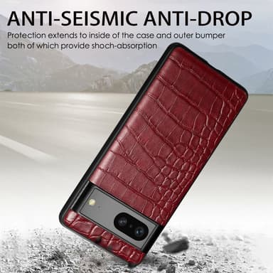 SKALO Google Pixel 7a Crocodile PU Nahka Hybrid Suojakuori - Musta