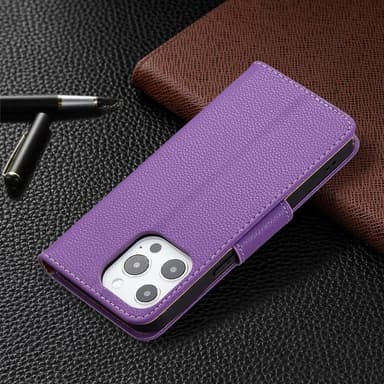 Ensiluokkainen PU-nahkainen lompakkokotelo, jossa on korttipaikat.