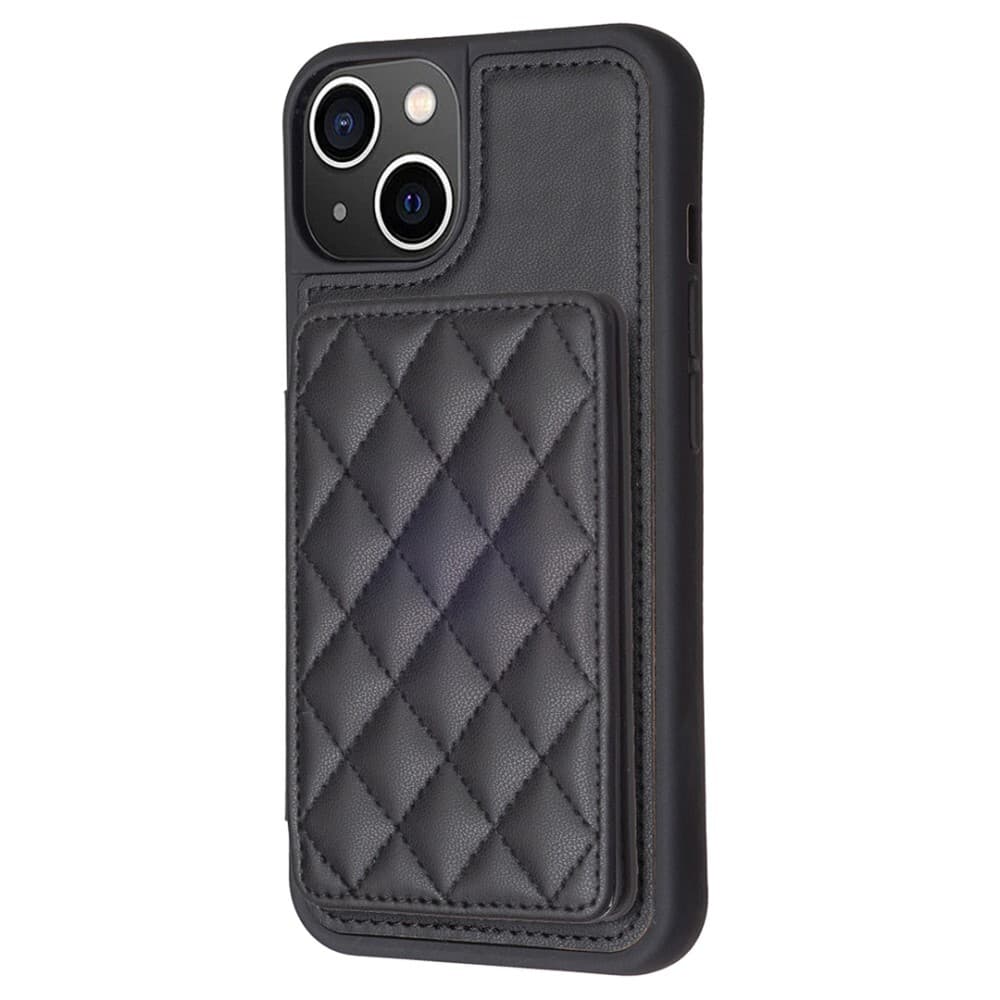 PU-nahasta valmistettu kuori, jossa on mukava tikattu ulkoasu ja pienempi lompakko, joka on asennettu kuoren takaosaan ja jossa on yhteensä 2 lokeroa.