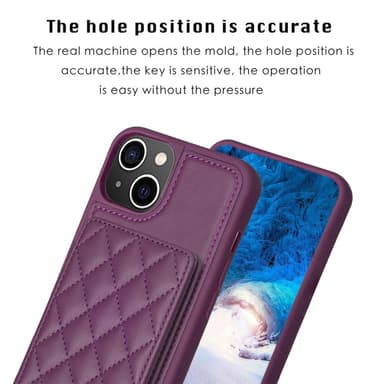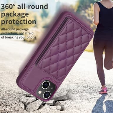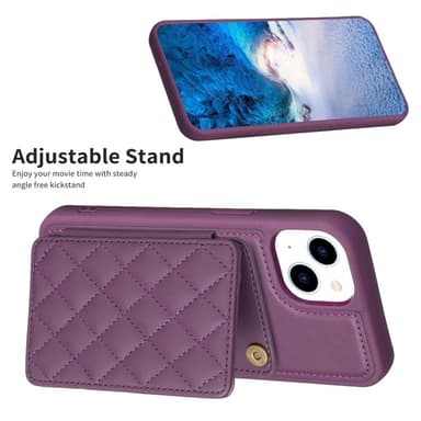 SKALO iPhone 15 Tikattu Suojakuori Lompakolla - Tumman violetti