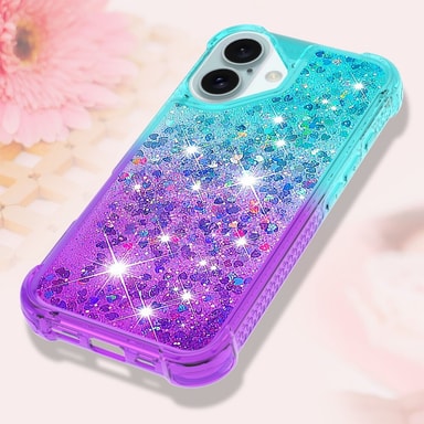 SKALO iPhone 16 Juoksuhiekka Glitter Sydämet TPU kuori - Turkoosi-Violetti