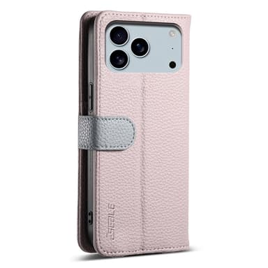 SKALO iPhone 17 Pro ESEBLE E11 Litchi Mirror Lompakkokotelo - Pinkki