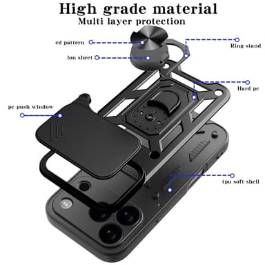 Koe äärimmäistä suojaa ja toiminnallisuutta Armor Metallinen rengas -kamerasuojuksella. Tämä suojakuori on suunniteltu antamaan puhelimellesi elegantin ulkonäön samalla, kun se suojaa sitä päivittäisiltä kolhuilta. Sisäänrakennettu pyörivä rengas helpottaa puhelimen käyttöä yhdellä kädellä ja katselukulman säätöä, ja magneettisen pidikkeen yhteensopivuus varmistaa vakaan sijoituksen autossa.