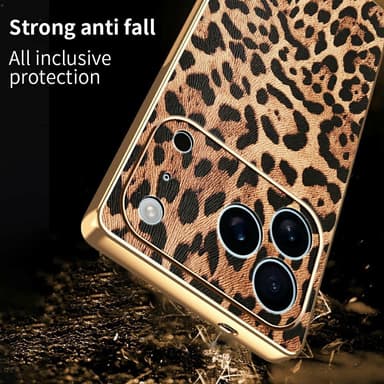 Tämä puhelinkuori yhdistää rohkean leopardikuvion ja kultasähköpinnoitetut reunat muodostaen tyylikkään ja ylellisen ilmeen. Valmistettu PU-nahasta, pehmeästä TPU-kehyksestä ja kovasta PC-taustasta, se tarjoaa joustavuutta ja kestävää suojaa. Sähköpinnoitettu pinta estää haalistumista ja säilyttää kiillon pitkään. Tarkat leikkaukset takaavat helpon pääsyn kameraan, portteihin ja painikkeisiin. Joustava kehys mahdollistaa nopean ja naarmuttoman asennuksen.