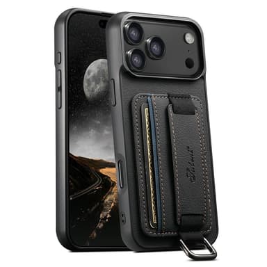 SKALO iPhone 17 Pro Max SUTENI H13 PU-nahkainen Korttikotelo Suojakuori - Musta