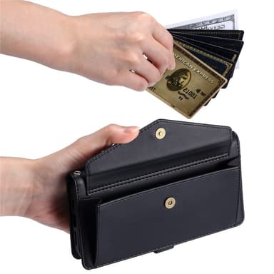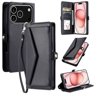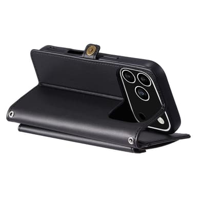 SKALO iPhone 17 Pro PU-Nahkakuori Lompakkokotelo - Musta