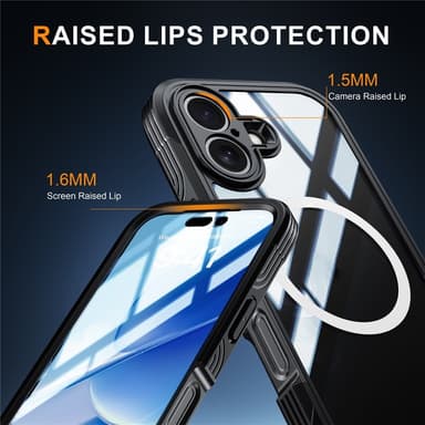 Shockproof Clear Hybrid+Näytönsuoja on läpinäkyvä puhelimen suojakuori, joka yhdistää tyylikkään muotoilun ja edistyksellisen suojan. Se on valmistettu kestävästä PC-takakannesta ja joustavasta TPU-kehyksestä, jotka tarjoavat vahvan suojan iskuja ja naarmuja vastaan. Täysin peittävä muotoilu ympäröi puhelimen tiiviisti säilyttäen sen elegantin ulkonäön. Läpinäkyvä materiaali tuo esiin puhelimen alkuperäisen muotoilun samalla kun se suojaa tehokkaasti. Sisäänrakennettu karkaistusta lasista valmistettu näytönsuoja suojaa näyttöä naarmuilta ja säilyttää kirkkauden ja herkkyyden. Korotetut reunat kameran ja näytön ympärillä tarjoavat lisäsuojaa pudotuksilta. Sisäänrakennettu magneettituki tekee suojakuoresta yhteensopivan MagSafe-latauksen kanssa.