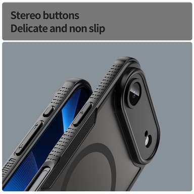 Armor Hybrid Frosted on ohut ja suojaava puhelimen kuori, joka yhdistää tyylin ja toiminnallisuuden. Se on valmistettu kovasta PC-muovista ja pehmeästä TPU:sta, tarjoten kevyen mutta kestävän suojan ilman ylimääräistä massaa. Vahva magneettinen yhteensopivuus tekee siitä MagSafe-yhteensopivan ja tukee langatonta latausta. Korotetut reunat kameran ja näytön ympärillä suojaavat naarmuilta, ja kulmien ilmatyynyt parantavat pudotuskestävyyttä. Puoliläpinäkyvä, huurreviimeistely hylkii sormenjälkiä ja pitää puhelimen siistin näköisenä. Tarkat leikkaukset mahdollistavat helpon pääsyn kaikkiin toimintoihin ilman kuoren poistamista.