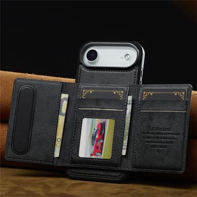 LC.IMEEKE L5 on monipuolinen puhelinkotelo, jossa on kätevä 2-in-1-muotoilu yhdistäen lompakon ja suojakuoren. Magneettikiinnitys mahdollistaa lompakko-osan irrottamisen ja kuoren käytön erikseen. Sisäänrakennettu magneettirengas tekee siitä yhteensopivan magneettisten autokiinnikkeiden kanssa, tarjoten turvallisen ja helpon käytön ajon aikana. Kuori tukee MagSafea ja langatonta latausta ilman, että sitä tarvitsee poistaa. Vahvistetut reunat tarjoavat kattavan suojan iskuilta, pölyltä ja naarmuilta. Kestävästä TPU:sta ja laadukkaasta PU-nahasta valmistettu kuori yhdistää suojan ja tyylikkään ulkonäön. Korttipidike toimii myös jalustana, mahdollistaen handsfree-katselun. RFID-suojaus estää korttien luvattoman skannauksen. Useat korttipaikat, setelitasku ja valokuvapaikka tarjoavat tilaa päivittäisille tarpeille.