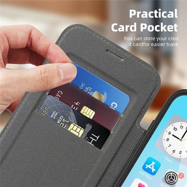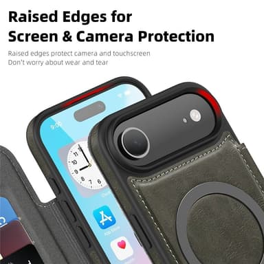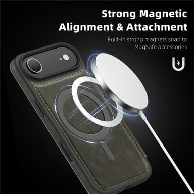 Tämä tyylikäs kuori tarjoaa erinomaista suojaa sisäänrakennetuilla magneeteilla. Saumaton MagSafe-yhteensopivuus mahdollistaa nopean langattoman latauksen joka kerta. Kuori on valmistettu kestävästä TPU:sta ja tyylikkäästä PU-nahasta. Kätevät korttipaikat mahtuvat helposti henkilökorttisi tai luottokorttisi. RFID-esto teknologia suojaa henkilötietosi luvattomalta skannaukselta. Korotetut reunat suojaavat näyttöä ja kameraa tehokkaasti.