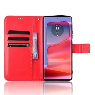 SKALO Motorola Edge 50 Pro 5G Crazy Horse lompakko PU nahka - Punainen