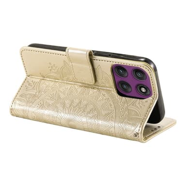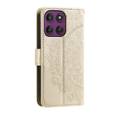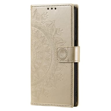 Suojaa puhelimesi tyylikkäästi Mandala-kotelolla. Kaksinkertainen PU-nahka ja pehmeä TPU suojaavat tehokkaasti naarmuilta. Sisäänrakennettu jalusta tarjoaa optimaaliset katselukulmat, ja kätevä korttitasku pitää tärkeimmät kortit tallessa.