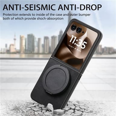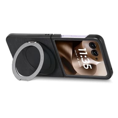 SKALO Motorola Razr 60 Ultra 5G D21 Kickstand Retro PU-Nahka Suojakuori - Musta
