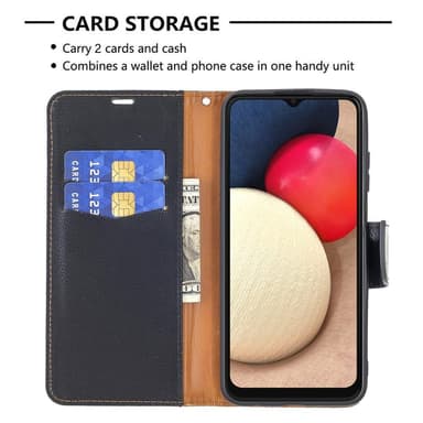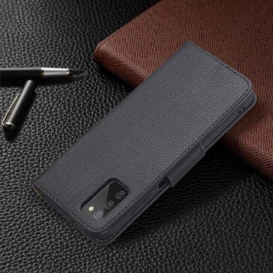 SKALO Samsung A02s / A03s Premium Litchi Lompakkokotelo - Musta